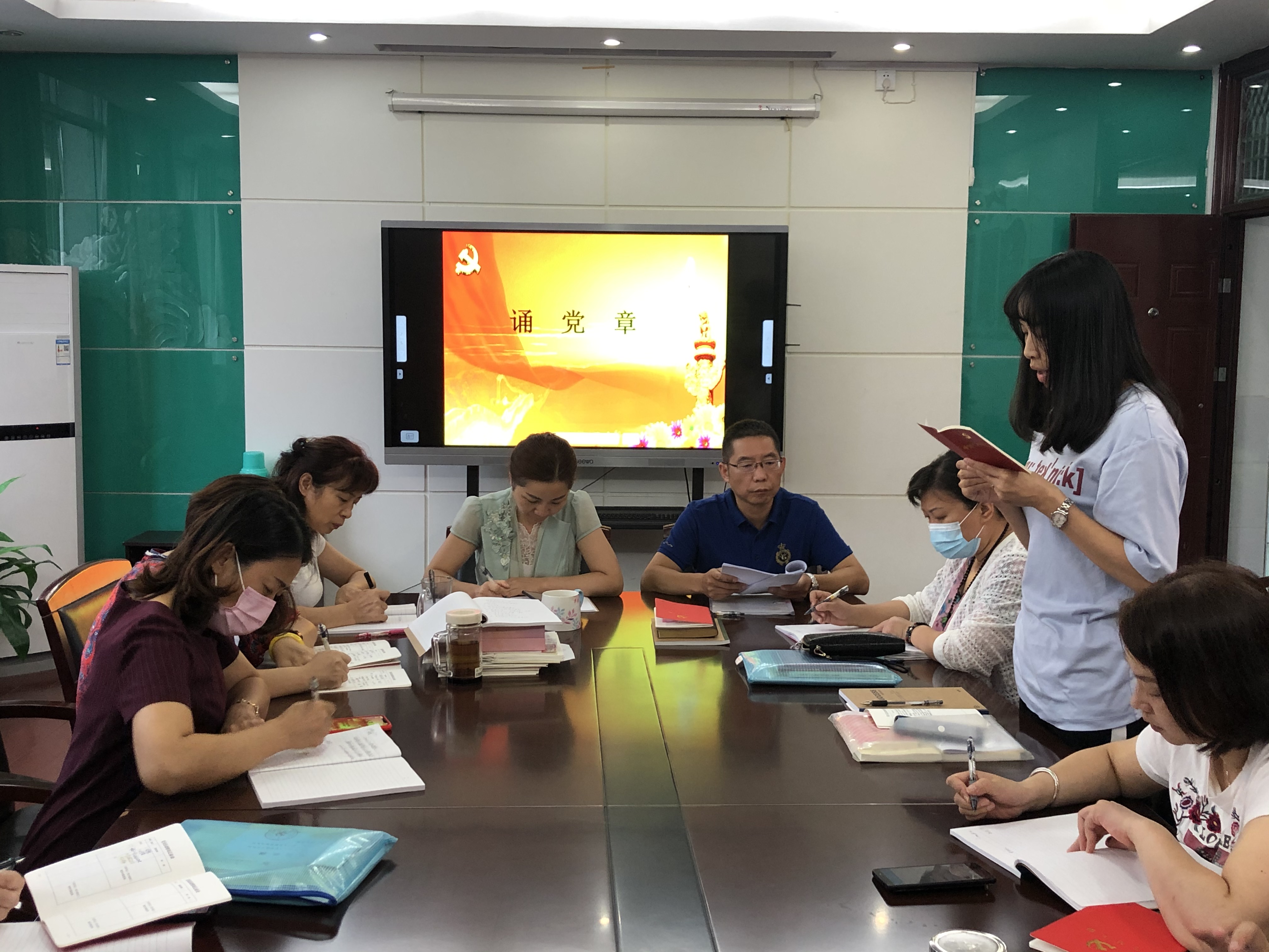 党日活动由书记王高敬主持。活动中开展了交党费、知党情、讲党课、党务公开等活动。着重学习了习近平总书记近期重要讲话精神、习近平总书记关于制止餐饮浪费的重要指示精神、学习《习近平谈治国理政》第三卷、8月18日市委常委会(扩大)会议精神、全市党风廉政建设宣传月精神、我区因私出国(境)专项清理情况的通报等内容。在“党课开讲啦”暨“初心如磐、使命在肩”主题党课活动中,郑娴以《共产党员为何要远离“负能量”?》为主题讲了党课,李翀瑜进行了《读习总书记讲话之体会 ——<习近平谈治国理政>第三卷 全面贯彻新时代中国特色社会主义思想和基本方略》理论精读分享。